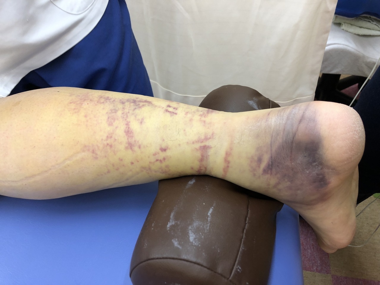 この場合はかなり炎症度合いが強いケースです。患部の固定も必要な場合があります。