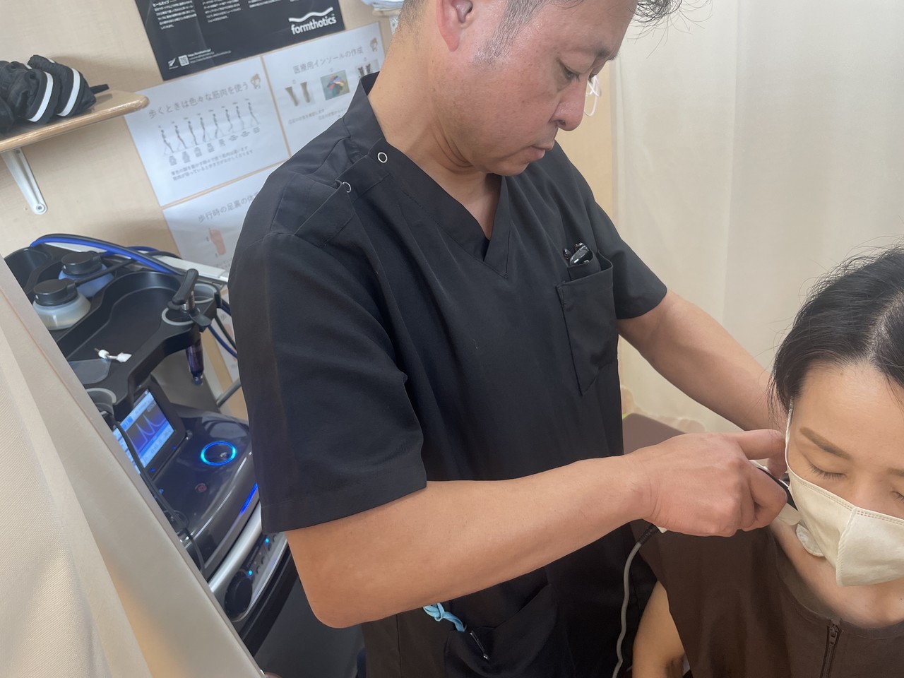 特殊な電流と電圧を神経に流すことにより過敏に反応している神経を鎮静して痛みを下げる効果があります
