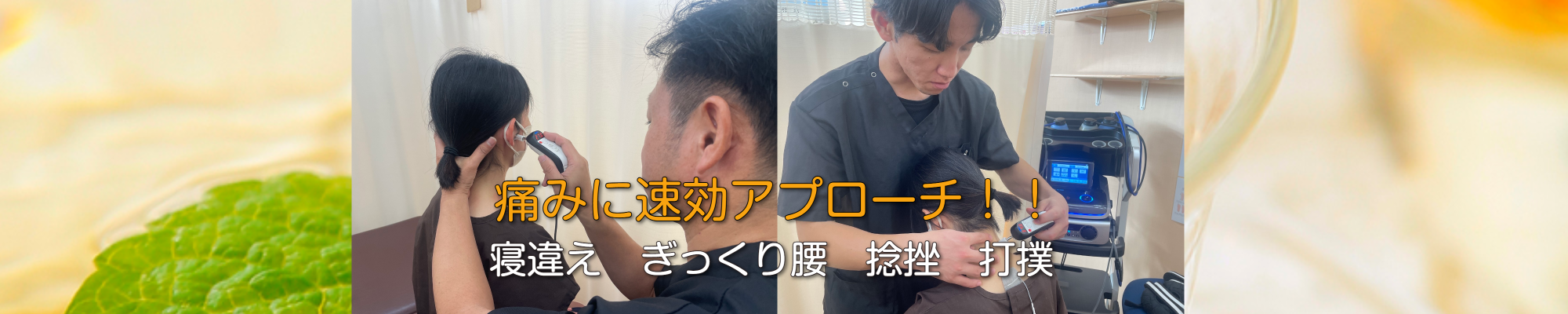 ぎっくり腰になった/試合中に足を捻挫した/なるべく早く治したい/服を着替える際に肩が痛む/ゴルフ・テニス・野球などで肘が痛い/ペットボトルの蓋を開けようとしたら痛む/