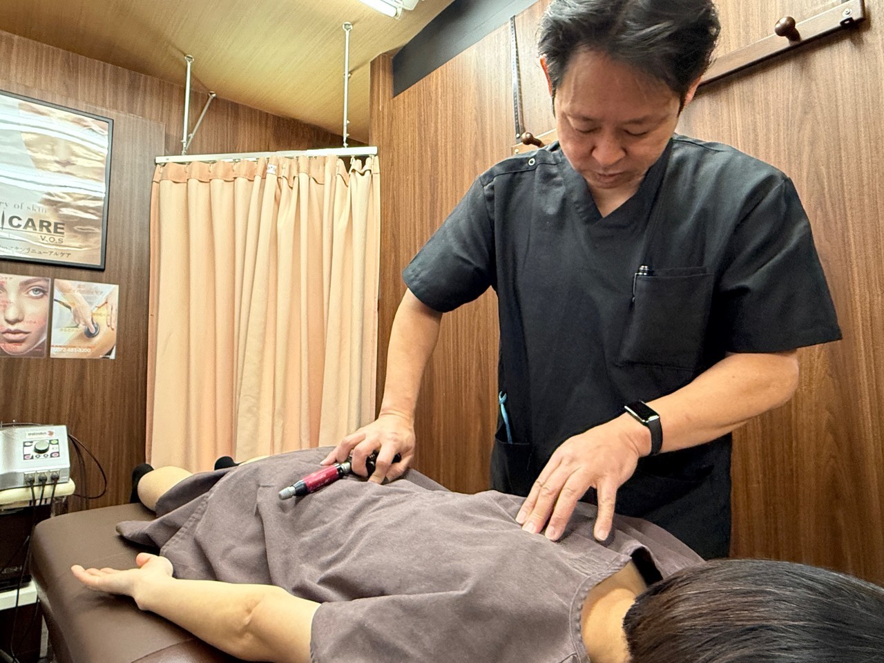神経過敏、筋肉緊張、筋肉弛緩などに対して物療機器を使用していきます